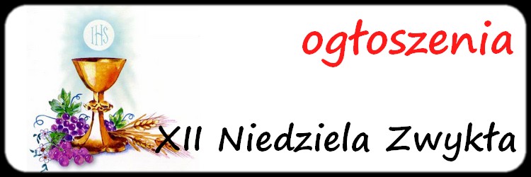 11. W dniach 1-2 lipca br. (wtorek – środa) odbędzie się 88. Ogólnopolska Pielgrzymka Nauczycieli i Wychowawców na Jasną Górę. Hasłem tegorocznej pielgrzymki są słowa: Szkoła i rodzina. Wspólnym pielgrzymowaniem przez wstawiennictwo Maryi podziękujemy Bogu za miniony rok pracy szkolnej, wypraszając potrzebne łaski dla całego środowiska nauczycielskiego, a także dla uczniów i ich rodziców. Program pielgrzymki zamieszczony jest w gablocie parafialnej. Wyjazd dla chętnych w środę 2 lipca. Zapisy do środy 25 czerwca w zakrystii lub w kancelarii parafialnej.