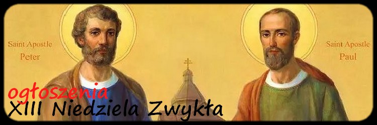 01. Przeżywamy XIII niedzielę zwykłą, która zbiega się z uroczystością Świętych Apostołów Piotra i Pawła. Jutro zakończenie nabożeństw czerwcowych.